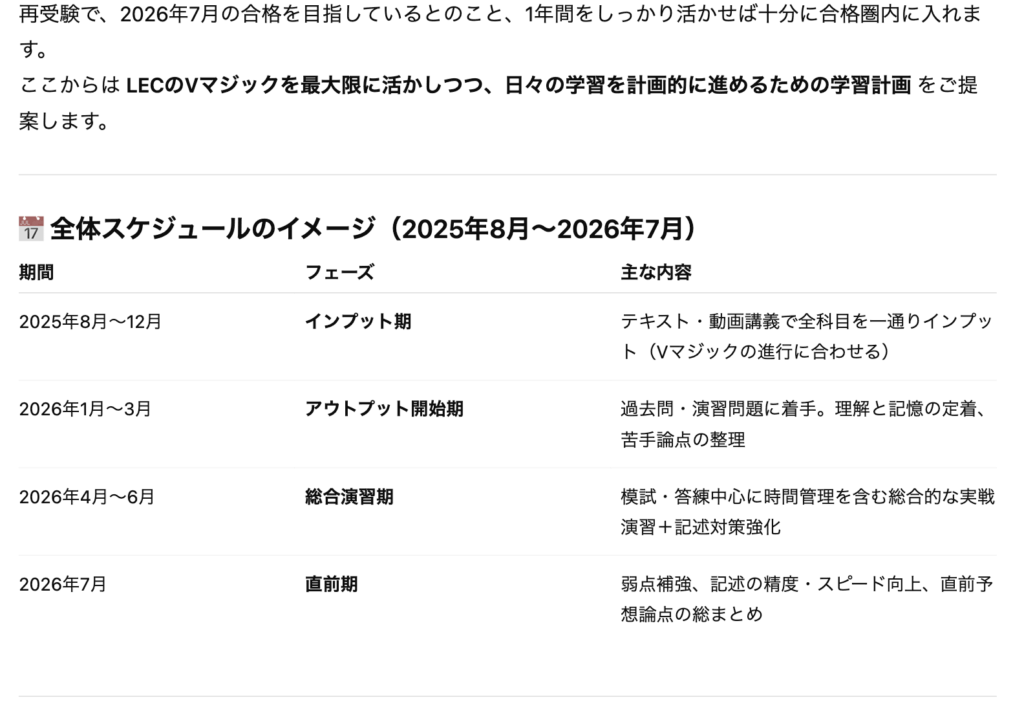 8月になって、そろそろ中旬くらいからVマジックの講座が始まるので、早速ChatGPTに計画を立ててもらいました。