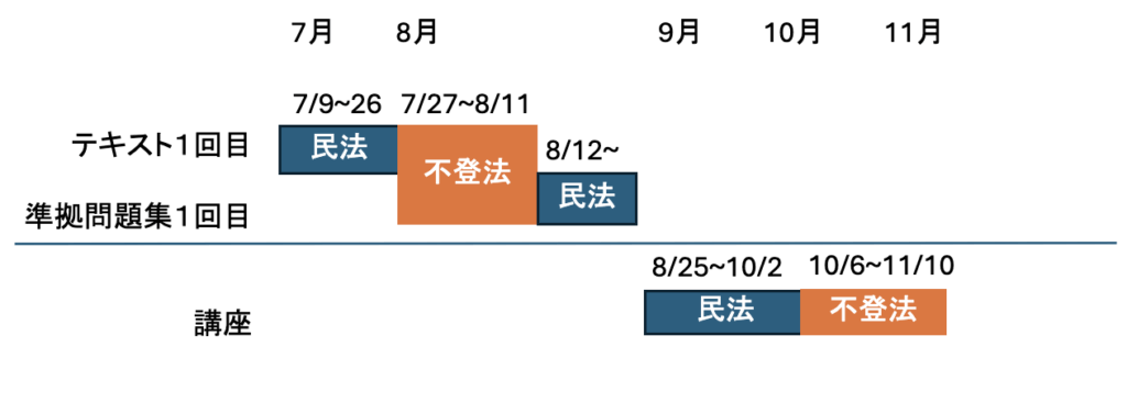 で、準拠問題集が届いたので、7/27からは不動産登記法をテキスト+問題集で予習を実施。