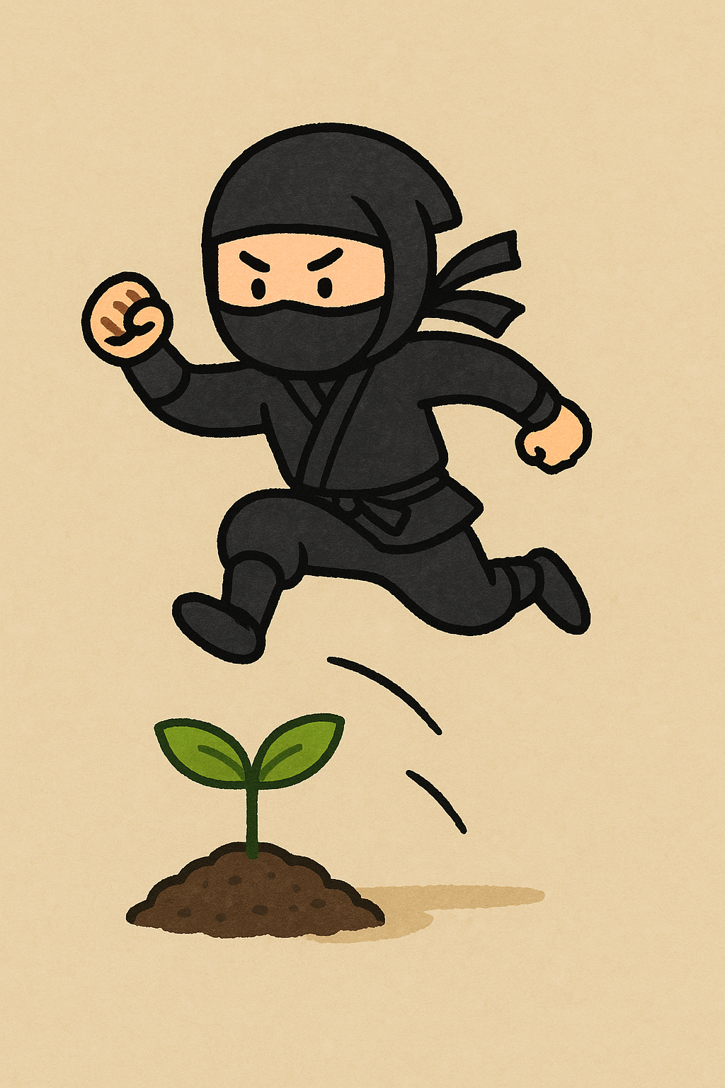 ――忍者が跳躍力を鍛えるために、麻の苗を植えて、毎日飛び越える。